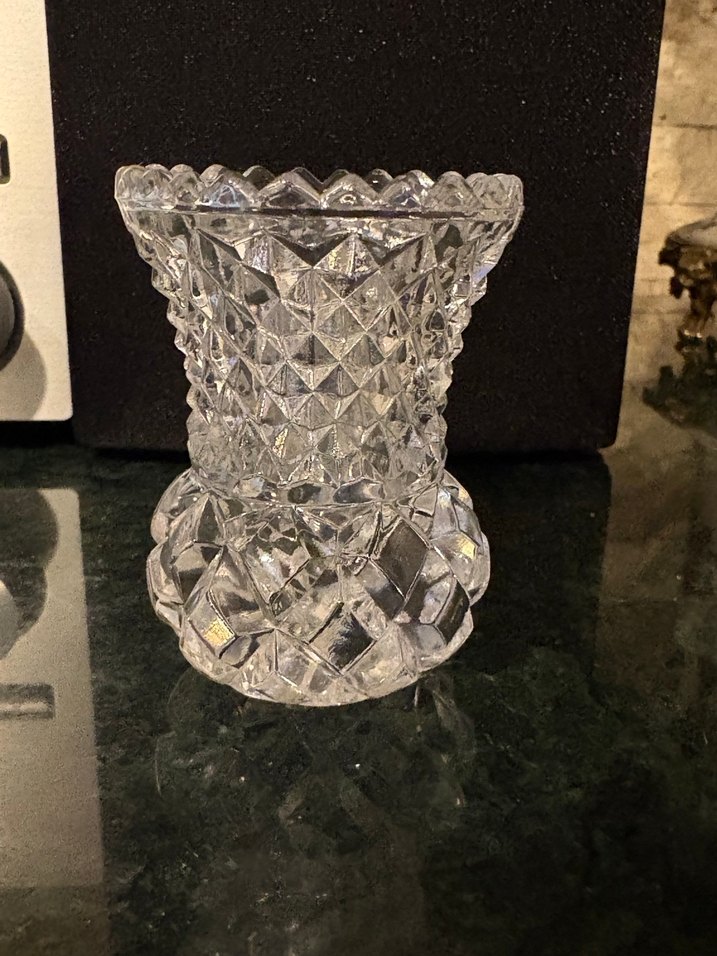 Gerçek kristaldir. Minyatür boydadır, kahve sunumları yanında kullanılabilecek veya dekorasyon için çok şık bir vazodur. Kusursuzdur. Vitrin ürünüdür. Ölçüler fotoğraflarda mevcuttur.