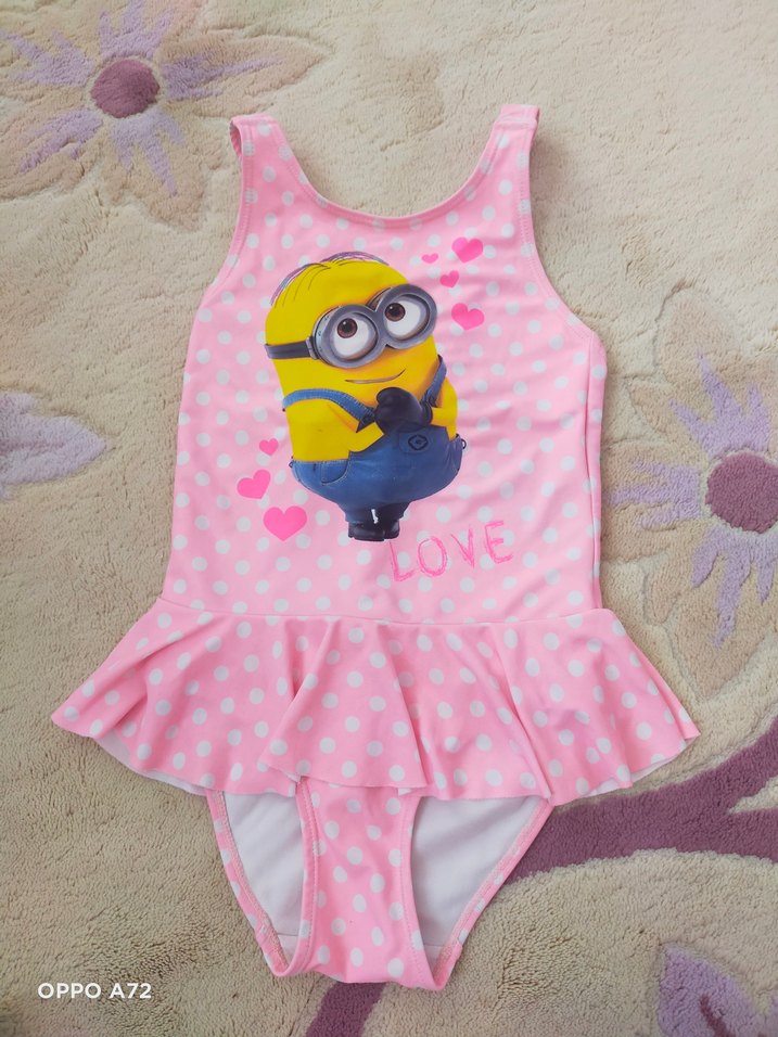Minyon Baskılı Pembe Kız Çocuk Mayo