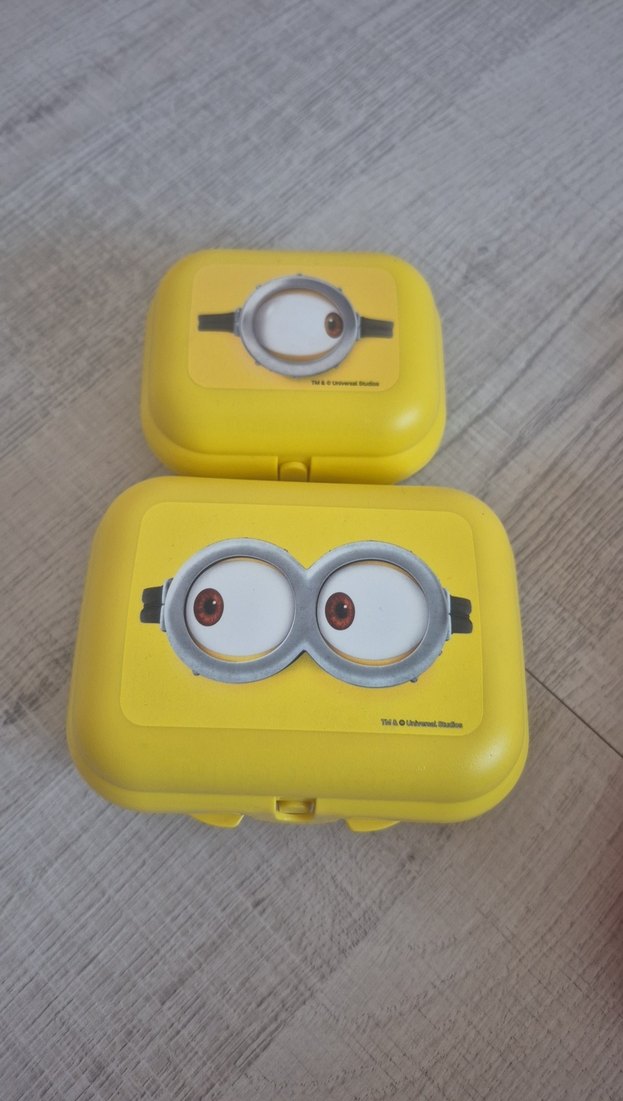 Canlı sarı renkte, Minyon göz desenli çocuklar için beslenme kutuları. sıfır ürün