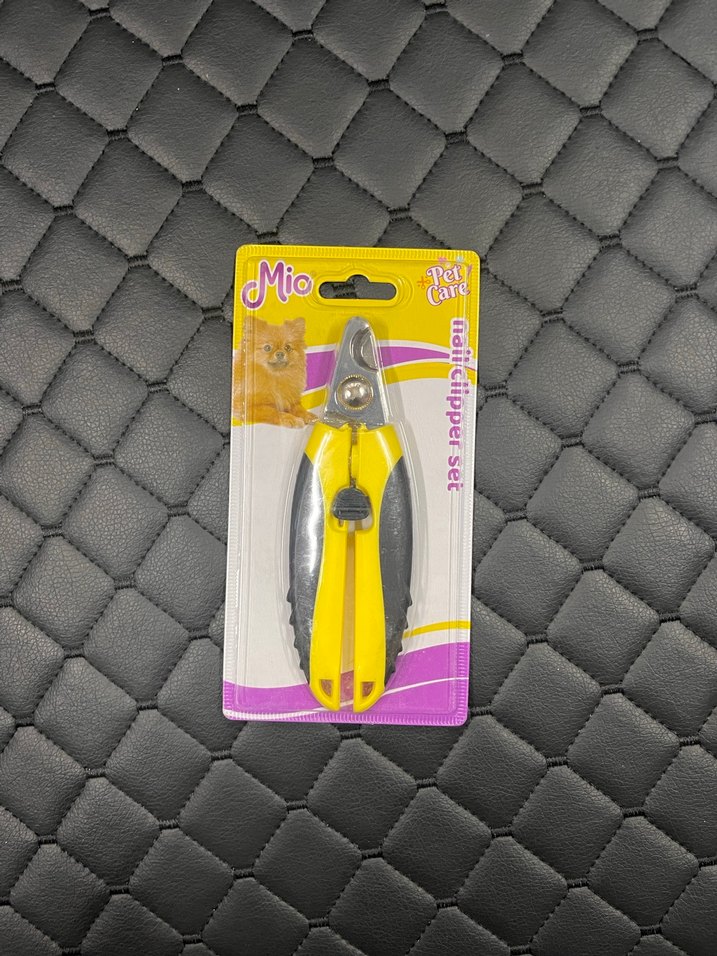 Mio sarı renkli kedi köpek tırnak makası, renkli sapları ve güvenli kilidi ile güvenli kesim sağlar.