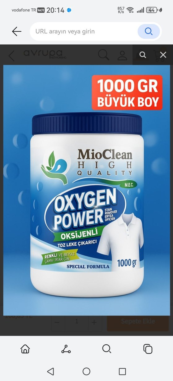 MioClean oksijenli toz leke çıkarıcı, renkli ve beyaz çamaşırlar için özel formüllü 1000 gram büyük boy üründür.