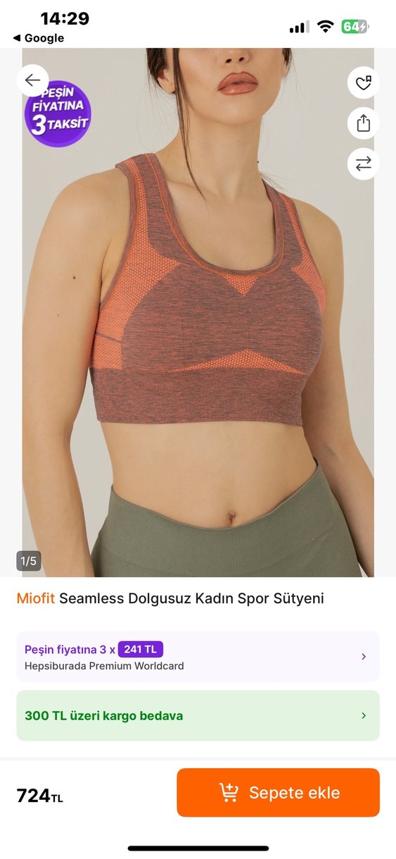 Hiç kullanılmadı sıfır ürün.Hijyen kuralları gereğinde geri iade kabul edilmeyecek .. Miofit markasına ait, elastik destekli, dolgusuz ve dikişsiz kadın spor sütyeni. Gri-turuncu renk kombinasyonunda, rahat ve şık bir spor görünümü sunar.