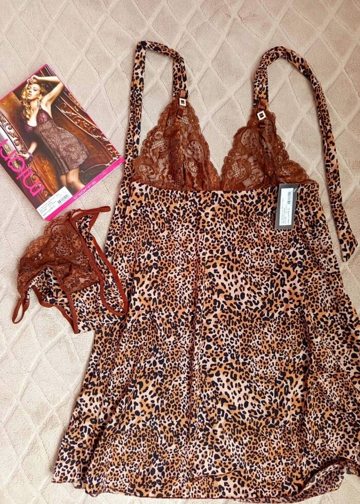 Leoparla cazibenizi artırın! Asırlardır kadınların en etkili silahı olan leopar deseni, şimdi de iddialı bir model ile gecenize renk katmaya geliyor. Göğüs kısmı tamamen dantel olan gecelik, rahat etek kesimi ile dikkat çekiyor. Ayarlanabilir askılar üzerine yerleştirilmiş parlak taşlar ise sizin de bir mücevher olduğunuz mesajını veriyor. Takım, külot dahil olmak üzere 2 parçadır.