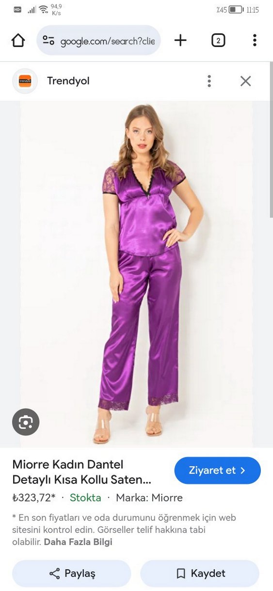Miorre saten pijama takımı Mor Midi Kadın Pijama ML beden