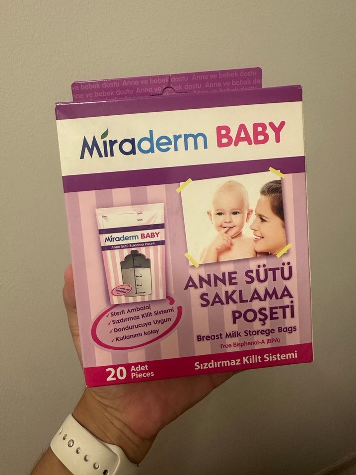 Miraderm Baby anne sütü saklama poşetleri, sızdırmaz kilit sistemi ile donatılmış ve dondurucuya uygundur. Paket içinde 20 adet bulunur.