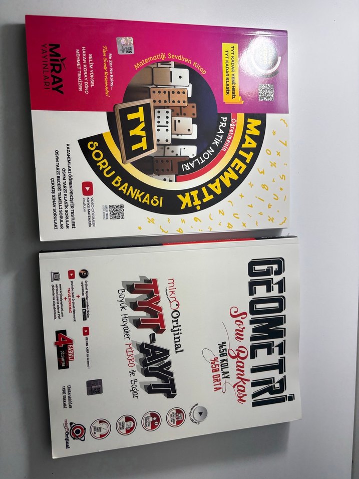 Miray yayınları TYT matematik soru bankası 2025 basım sıfır kapağı bile açılmamıştır. Mikroorjinal yayınları TYT AYT Geometri soru bankası 2025 basım sıfır kapağı dahil açılmamıştır.