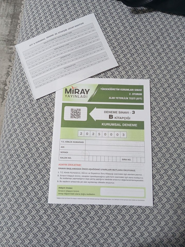Miray Yayınları tarafından hazırlanan, Yükseköğretim Kurumları Sınavı 2. oturum alan yeterlilik testi için 3. deneme sınavı B kitapçığıdır. Kurumsal denemedir.