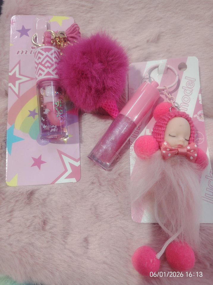 Adet fiyatıdır. Diğer renkler için mesaj iletin. hafif parlak dudak parlatıcısı ve renkli ve şeffaf çeşitleriyle peluş anahtarlık ile bebek figürlü aksesuar seti. ✨