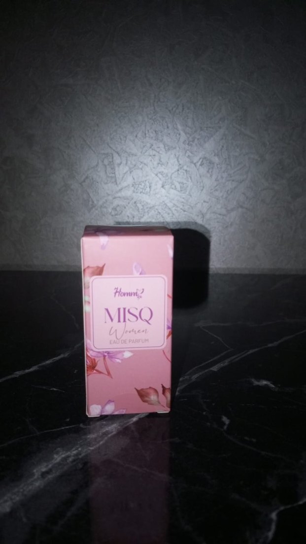 50 ml'lik MISQ Kadın Parfümü, pembe kutuda çiçeksi koku sunar.