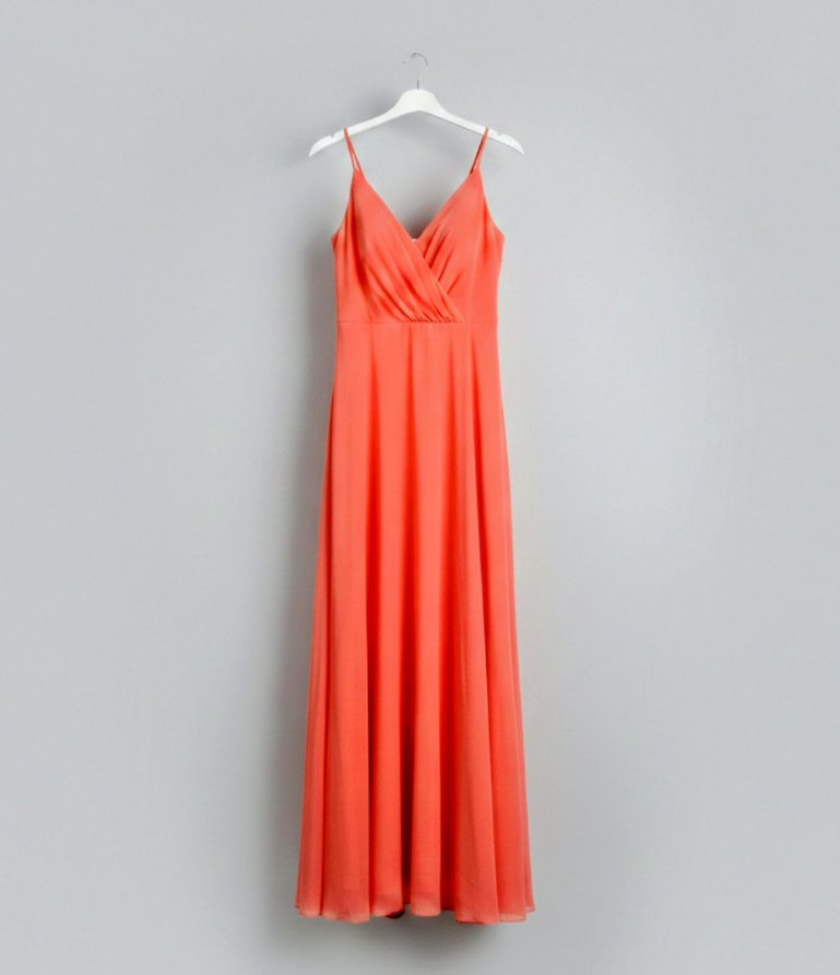 Miss Proto - 48 Beden - Mercan Rengi Sırt Dekolteli Şifon Abiye
