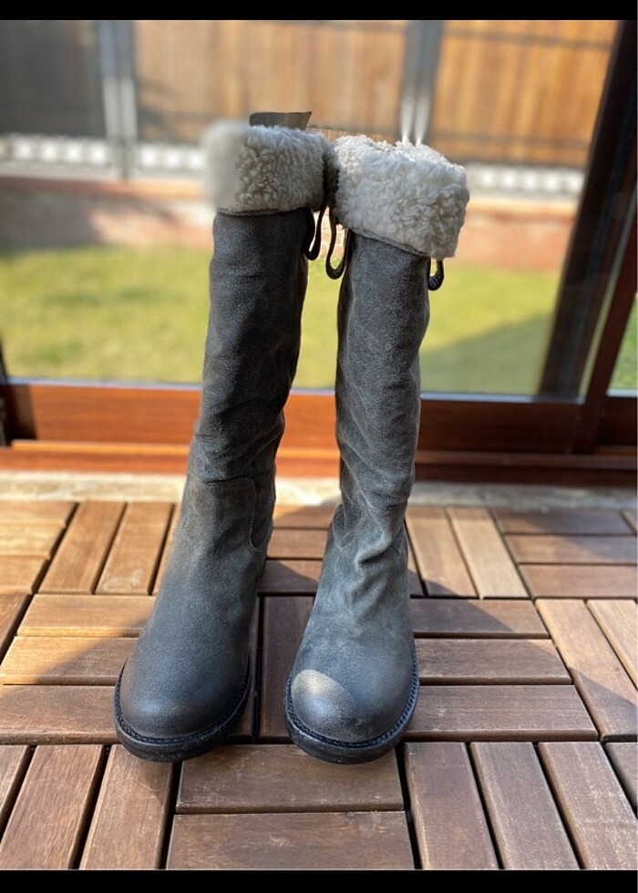 Orijinal. Bir kere giydim altını temizlemeden özellikle fotoğrafladım ne kadar kullanıldığı görülsün istedim. Kutusu duruyor. Kürkü kartlanıp veya açık da kullanılıyor Bu fiyata bu markadan terlik bile alınamıyor ne yazık ki