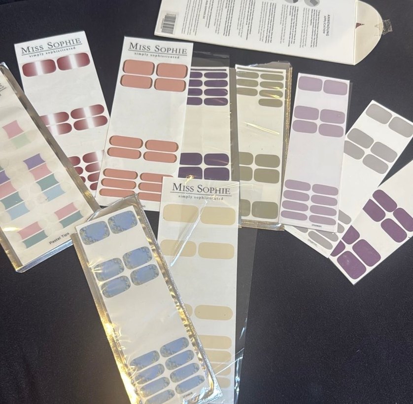 Miss Sophie markalı, çeşitli açık ve çok renkli tırnak süslemeleri. Her pakette kolay uygulama için farklı tonlar bulunur. ✨istediğinizi seçebilirsiniz