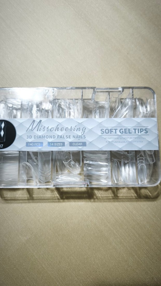 Misscheering markalı, 14 farklı boyutta ve 3D elmas desenli, 140 parça şeffaf yumuşak jel tırnak ucu seti.