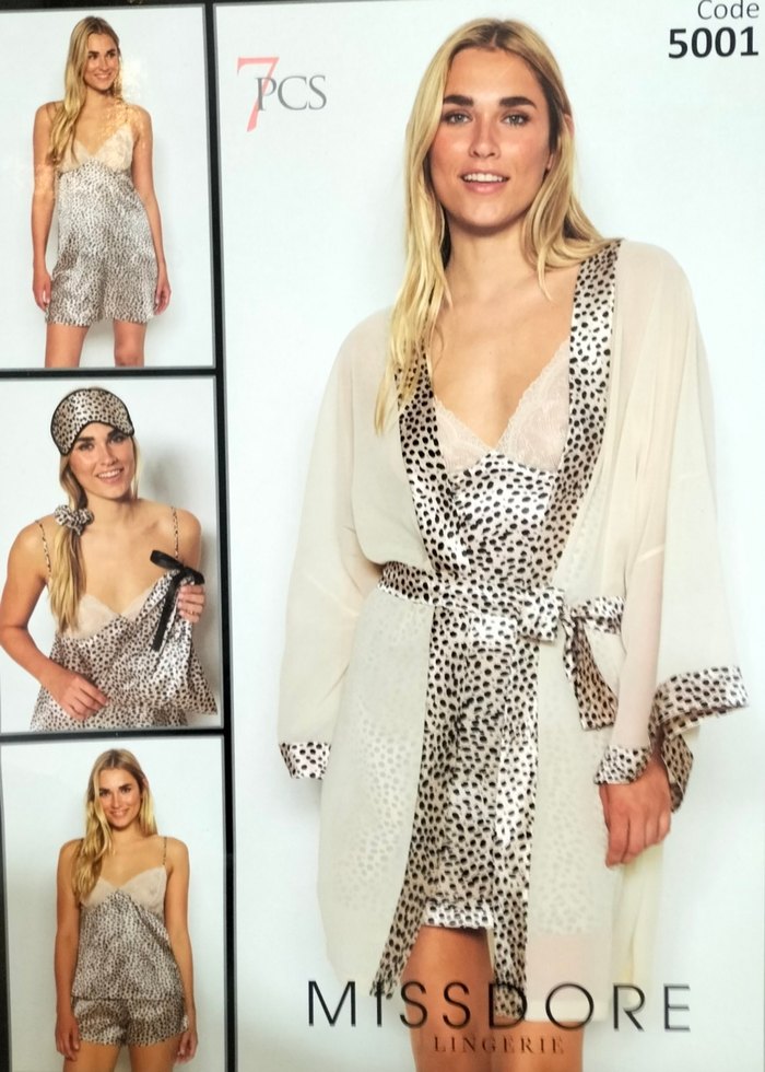 MİSSDORE.. 7 parça beden XXL Leopar Desenli Uzun Kadın Sabahlık
