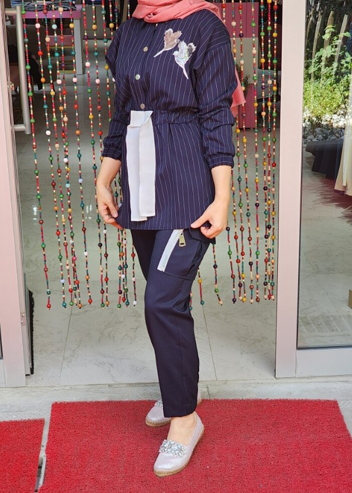 Missemramiss cizgili lacivert takım