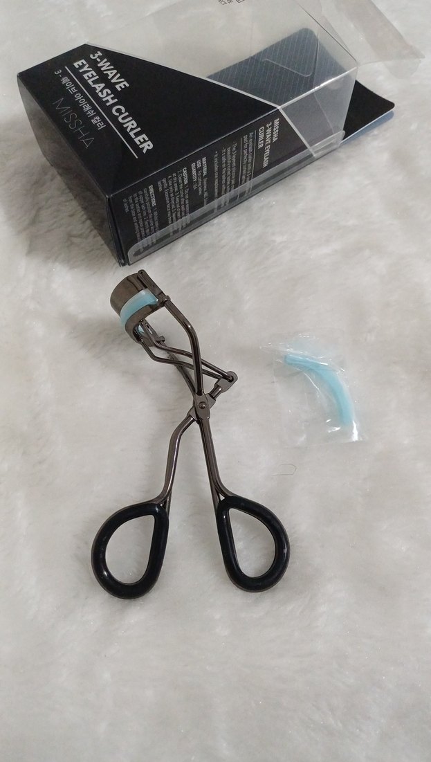 MISSHA 3-Wave kirpik kıvırıcı, bej saplı ve gri metal parçalı, kirpikleri etkili şekilde kıvırmak için tasarlanmıştır. Orijinal kutusunda. ✨
