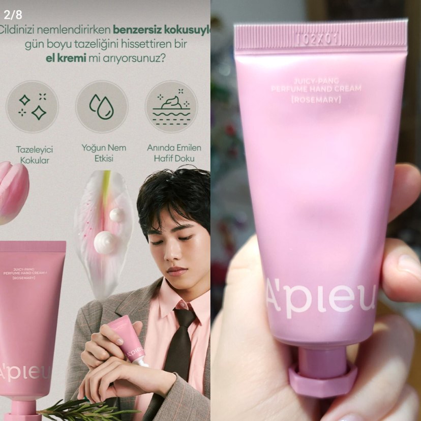 A'pieu pastel pembe el kremi, yoğun nem sağlar ve anında emilen hafif dokusuyla benzersiz biberiye kokusu bırakır. denendi ürün doludur