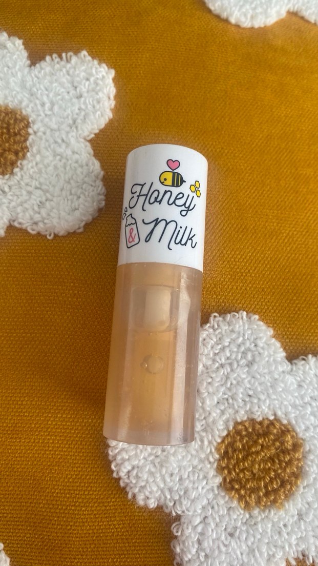 Honey Milk dudak parlatıcısı, pastel bej renkte hafif parlaklık ve nemlendirme sağlar.