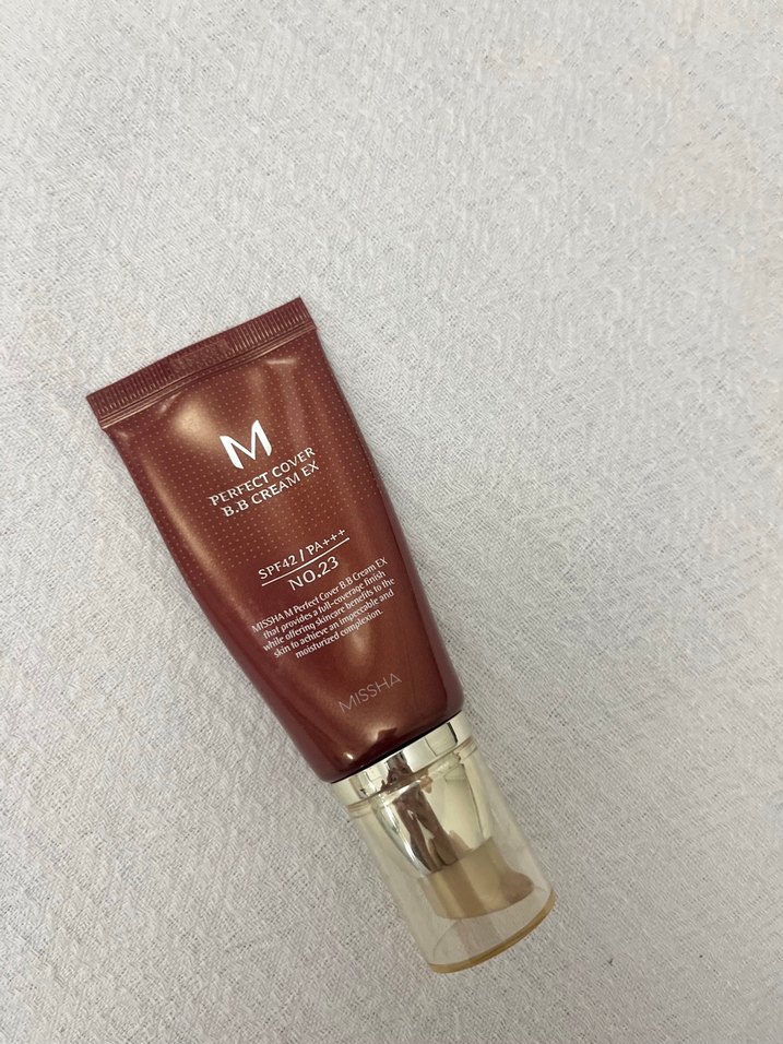 Missha M Perfect Cover BB Krem No:23, bej renginde parlak kapatıcılık sağlar ve SPF 42 koruması içerir. Cilt tonunu eşitler ve parlak bir görünüm sunar.