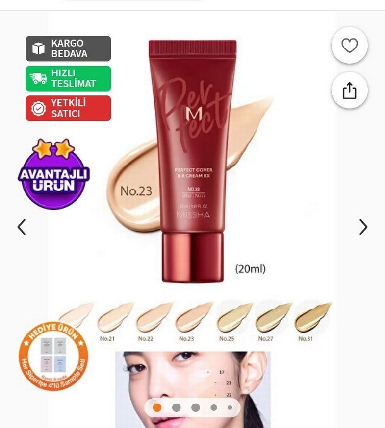Missha No.23 parlak kırmızı tüpte SPF42 korumalı hafif kapatıcılı BB krem, doğal bir görünüm sağlar. 20 ml. 26 11 ayın 12'si