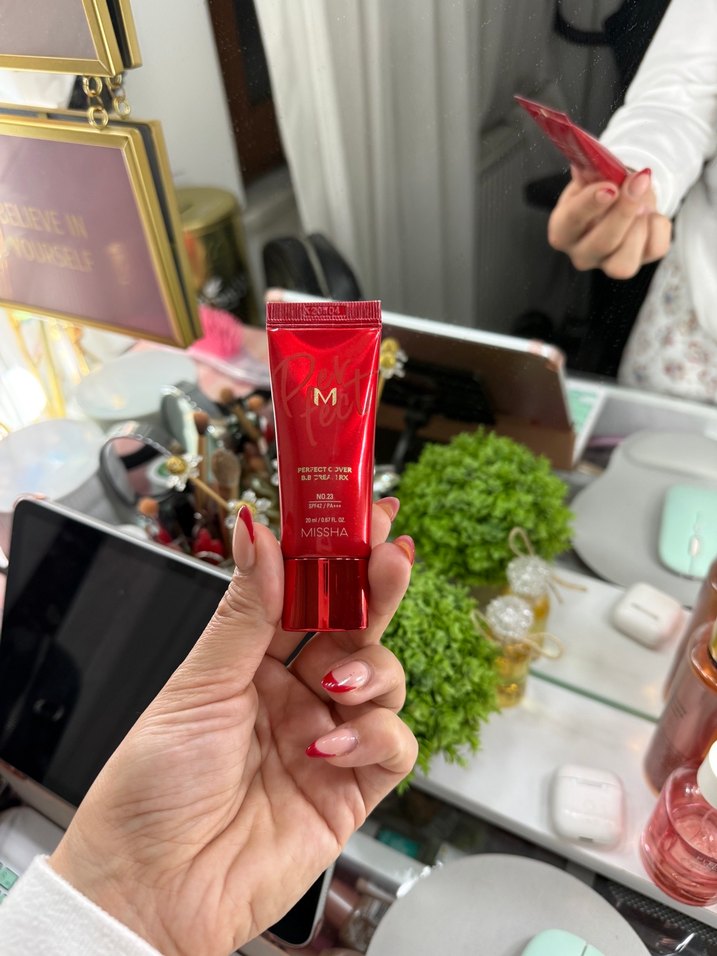 Missha'nın parlak kırmızı tüpteki BB kremi, cilde hafif kapatıcılık ve ışıltılı bir görünüm sağlar. No:21 ve 23 mevcut