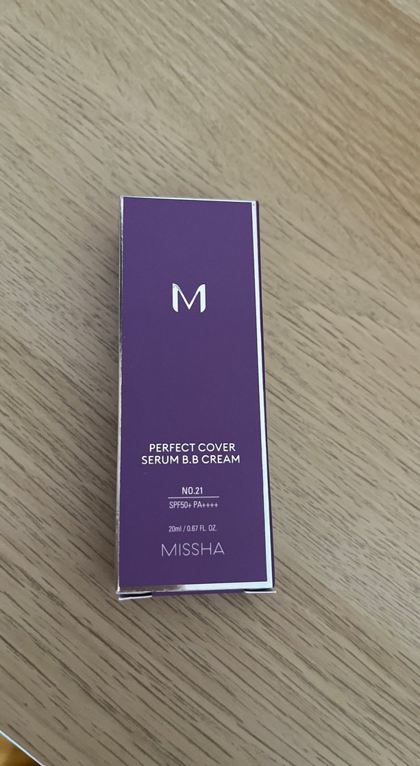 Missha Parlak mor kutuda Perfect Cover Serum BB Krem. SPF 50+ PA+++ koruma sağlar ve No. 21 tonunda, 20 ml hacmindedir. Kapalı kutu ürün