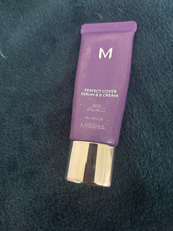 Missha Perfect Cover Serum BB Krem No.23, parlak mor tüpte SPF50+ PA+++ koruma sağlar. Hafif ve serum dokusuyla kapatıcılık sunar. ✨yarıdan fazladır