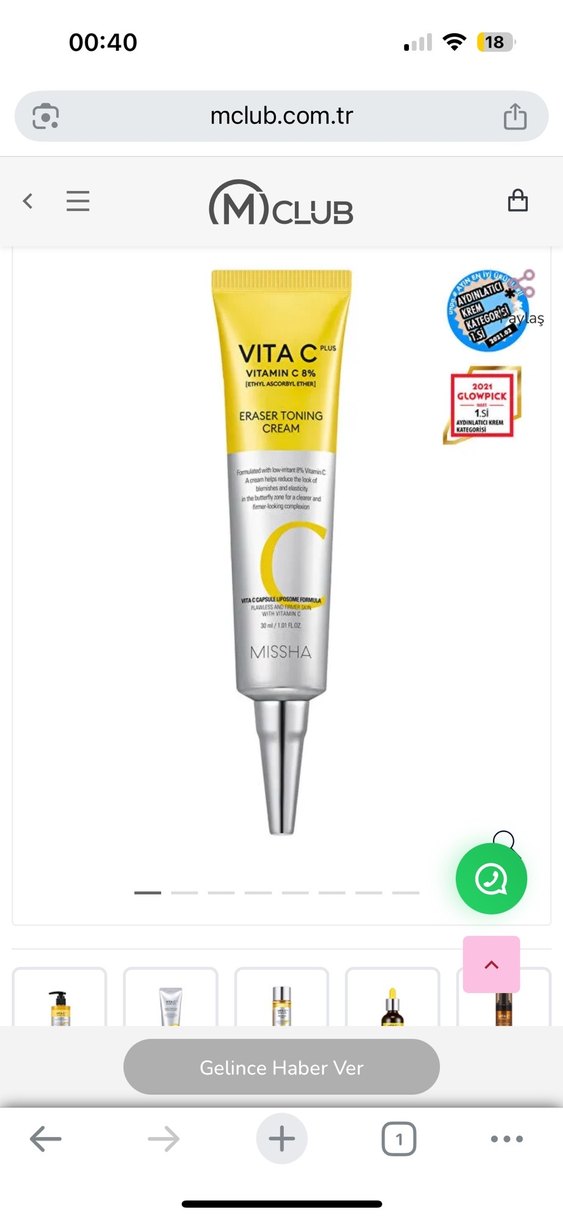 Bir kere kullandım.Missha Vita C Plus Eraser Toning Krem, %8 vitamin C içerir ve cilt tonunu eşitleyip aydınlatır. Pastel sarı krem cilt parlaklığını artırır.