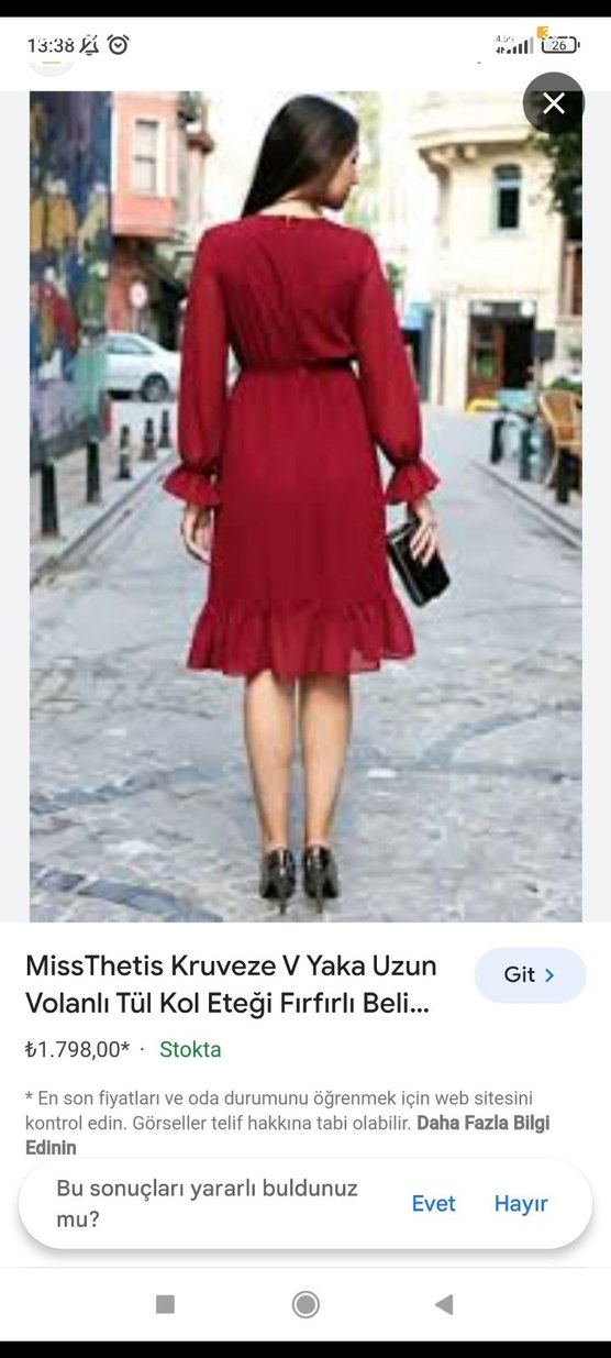 Bordo renkli, V yakalı ve uzun kollu, volan detaylı, bol kesim uzun elbise. Parlak sentetik kumaştan günlük kullanıma uygun.