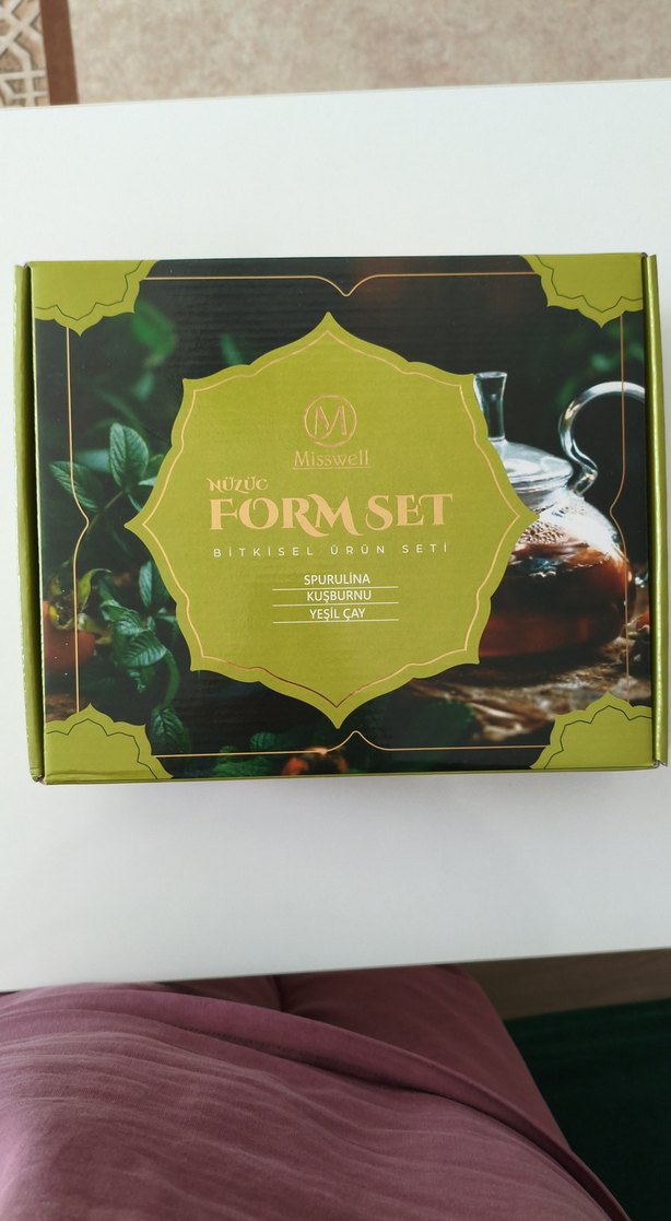 Misswell Form Set, spirulina, kuşburnu ve yeşil çay içeren bitkisel ürünler içerir. kilo vermek için kullanılır