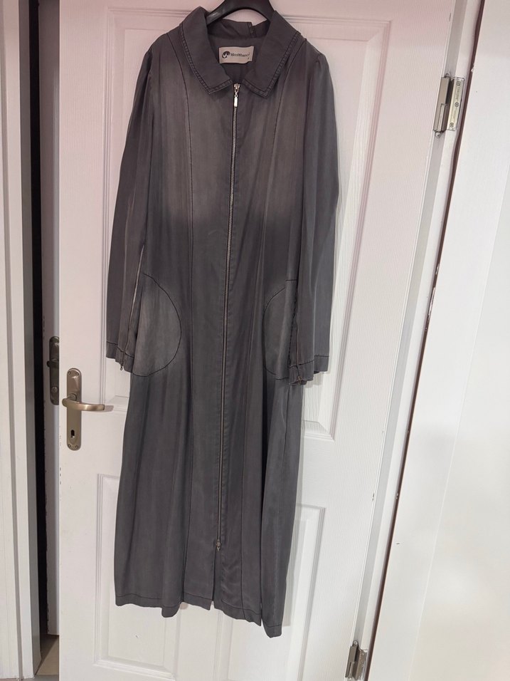 Çok severek aldım ancak bedeni artık bana olmuyor aynı modelin büyük beden mavisini severek kullanıyorum .İki kol arası 50 cm boy 136 cm. fermuar uçları ve kemeri mevcut değildir. Kumaşı %68 pamuktur.Lütfen merak ettiklerinizi sorunuz iade kabul etmiyorum