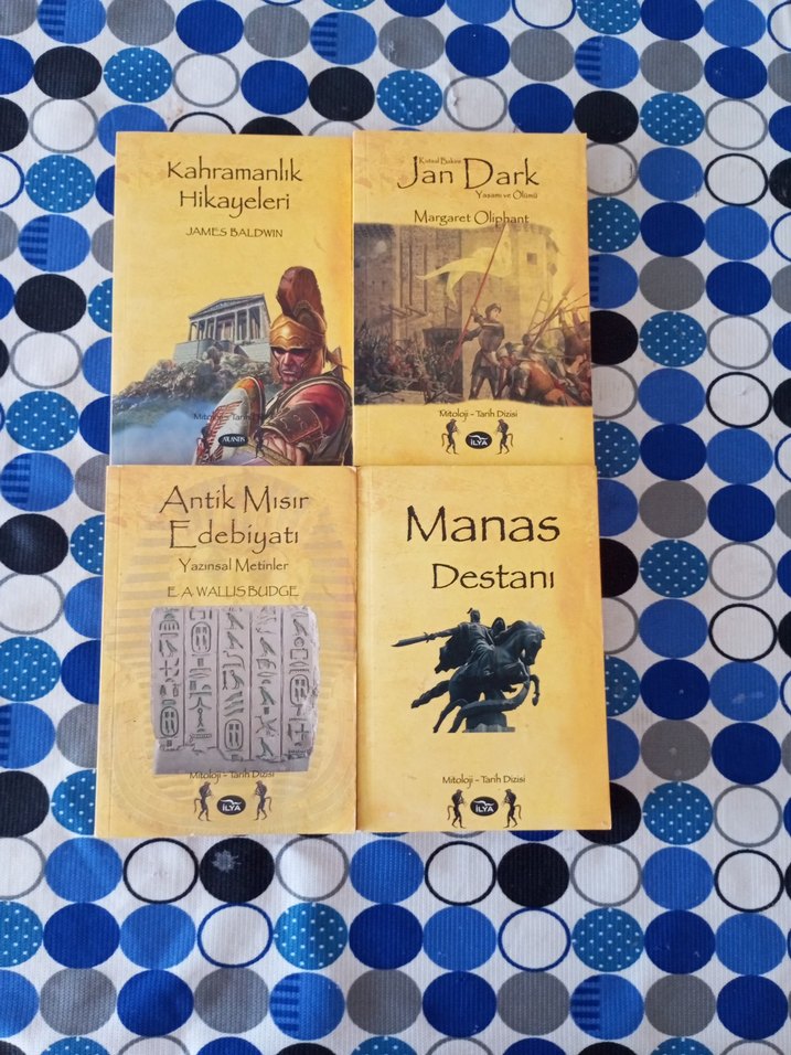 James Baldwin, Kahramanlık hikayeleri; Margaret Oliphant, Jan Dark; Wallisbudge, Antik Mısır edebiyatı; Manas Destanı. Kitaplar hiç okunmadı ve hiç deforme yok üzerlerinde. İlgilendiğiniz olursa tek parça olarak ilan açabilirim.