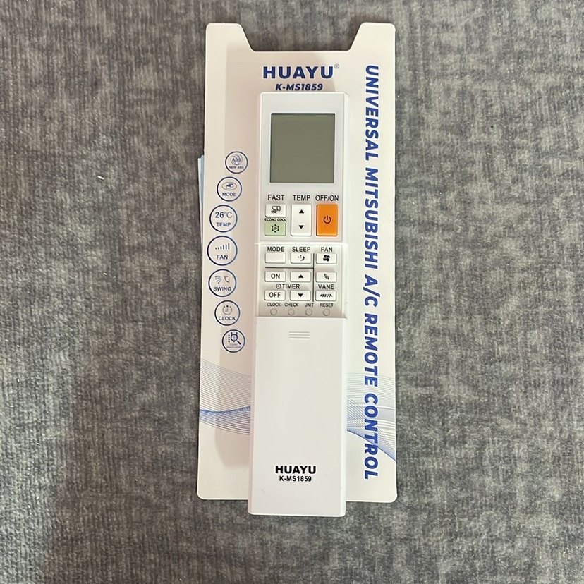HUAYU evrensel Mitsubishi klima kumandası K-MS1859 modeli, sıcaklık göstergesi ve çeşitli fonksiyon tuşları içerir. ❄️