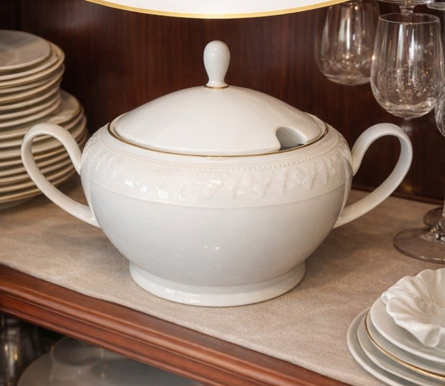 Zarafetiyle sofrayı tek başına yükselten orijinal Mitterteich Alman porseleni çorbalık. Üst çapı 20cm olan, beyaz Alman porseleni. Üzerinde ince kabartma detayları ve kapaklı formu ile hem günlük kullanım hem de özel davetler için ideal. • Çap: 20 cm • Malzeme: Alman porseleni (Mitterteich) • Durum: Çok temiz / çizik-kırık yok • Kapaklı, kulplu – servis için çok şık Koleksiyonerlerin ve klasik sofra tutkunlarının favorisi. Sofranıza sade ama asil bir dokunuş arıyorsanız tam parça ✨