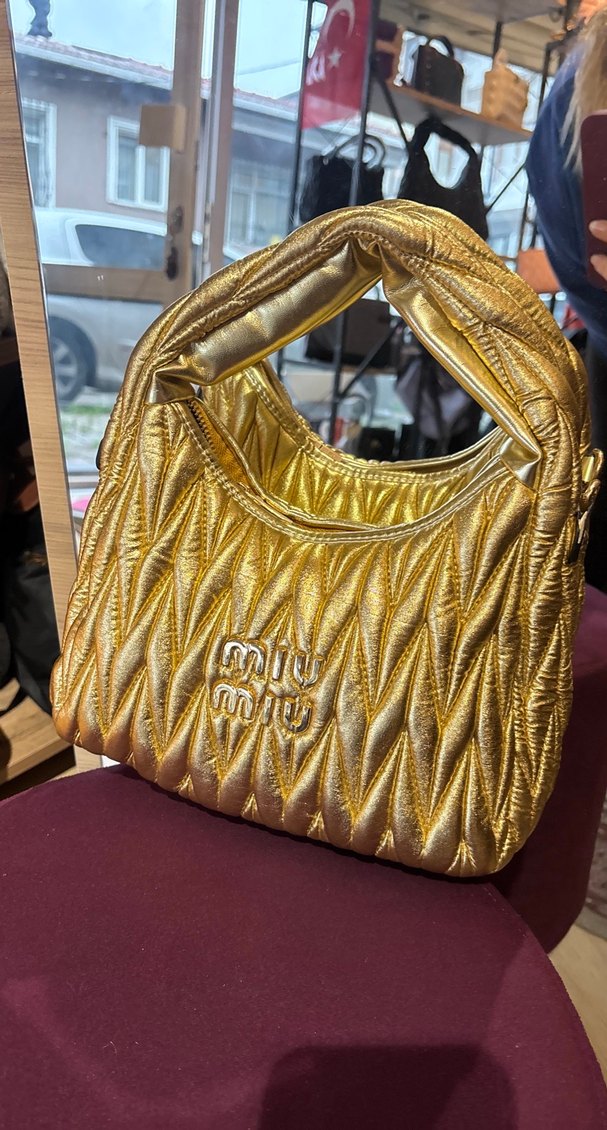 Miu miu Altın Renkli Deri Kabartmalı Kadın Çanta