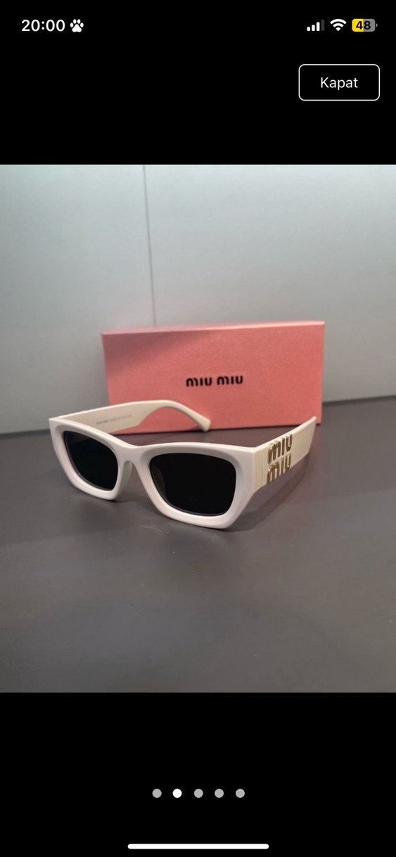 Kutusu mevcut değildir. Miu Miu markalı, minimalist ve sade tasarımlı beyaz kadın güneş gözlüğü, gri camlı, trend sokak stili için uygun. ️