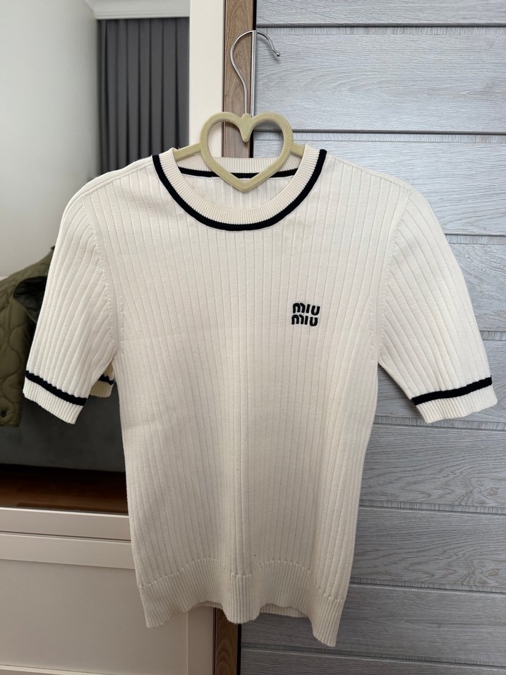 Miu Miu Beyaz Kısa Kollu Triko Tişört