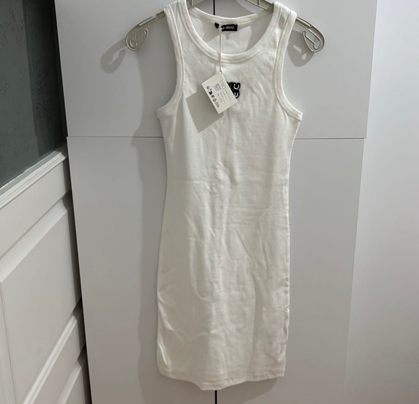 Miu miu Beyaz Kolsuz Midi Pamuk Elbise