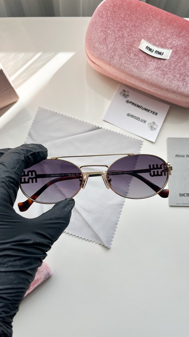 Miu Miu marka bej çerçeveli, gri camlı kadın güneş gözlüğü, minimalist ve avangart tasarımıyla şıklık sunar. ️