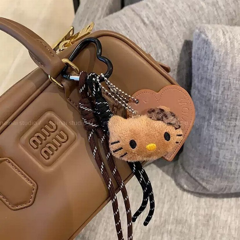 Kahverengi, tokalı anahtarlık, kalp şeklinde deri detayı ve sıcak peluş figür içerir. Trendy casual sokak stiline uygundur. 'miu' markası bulunur.