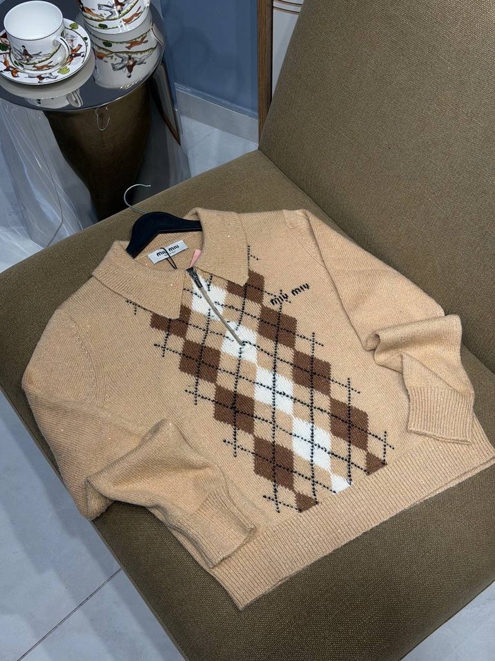 Miu miu Kahverengi Nakışlı Triko Kadın Kazak