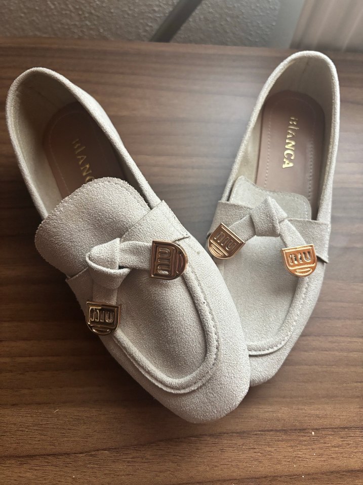 Bej yumuşak süet malzemeden yapılmış tokalı loafer ayakkabı hiç giyilmedi