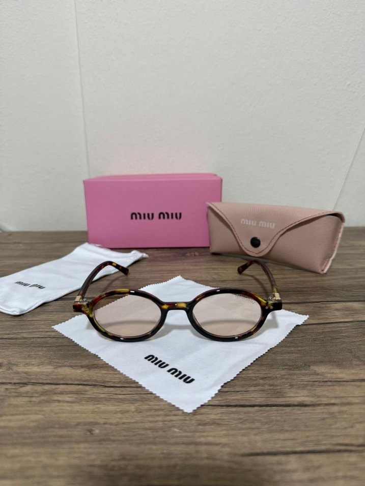 Miu Miu marka, pastel bej çerçeveli kadın gözlüğü, rahat ve şık Paris sokak stilini yansıtıyor. Kılıf ve temizleme bezi ile birlikte.