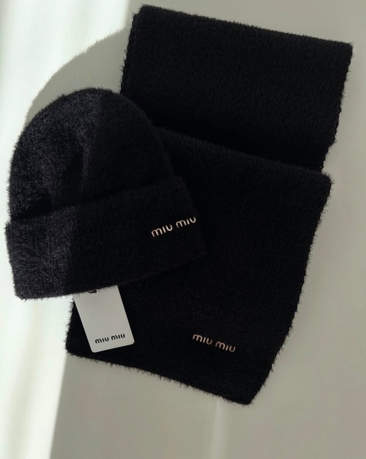 Miu Miu'nun siyah örgü yün beresi, yumuşak dokusuyla rahat ve sade bir sokak stili sunar.