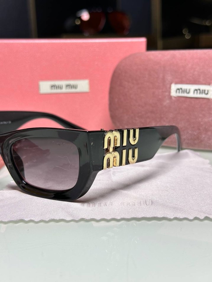 Miu Miu siyah tokalı ve koyu renkli camlı kadın güneş gözlüğü. Sokak stiline uygun, kutu ve bez ile birlikte.