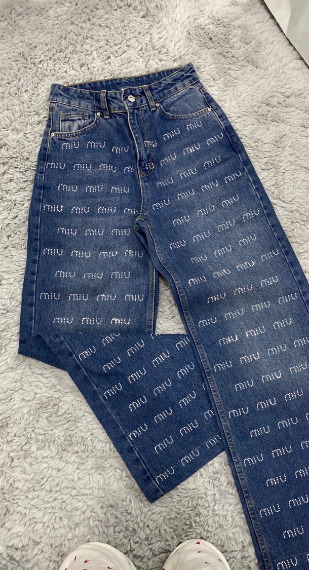 Miu miu yazılı taşlı kot pantolon