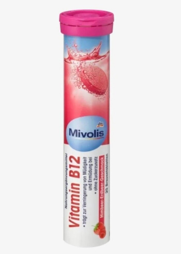 Mivolis Alman Kalitesi Karışık Meyveli B12 Vitamin Suda Eritilen Efervesan Tablet Meyve Suyu Içecek Çilek Böğürtlen. Almanya'dan alınmıştır. Son kullanma tarihi 02.26'dır. Türkiye'de 300 TL civarında satılmaktadır. Elimde 10 adet bulunmaktadır.