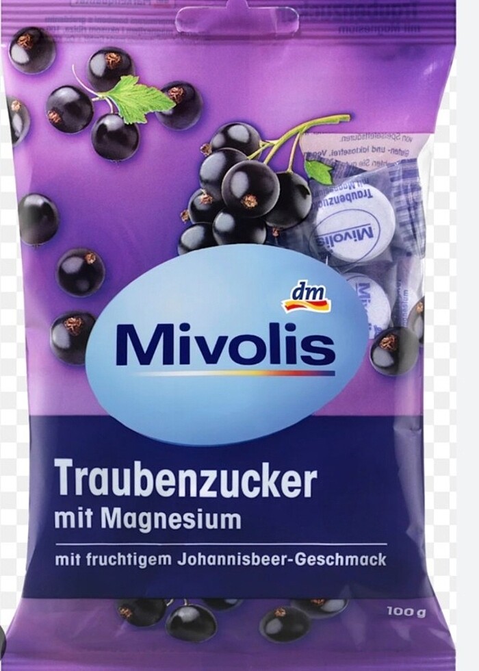 MİVOLİS Dekstroz, magnezyumlu frenk üzümü, 100 gr meyveli frenk üzümü aromalı magnezyum ile hareket halindeyken ideal Mivoli'nin magnezyum içeren glikoz tabletleri, meyveli frenk üzümü aromasıyla lezzetlidir ve hareket halindeyken kullanmak için idealdir.