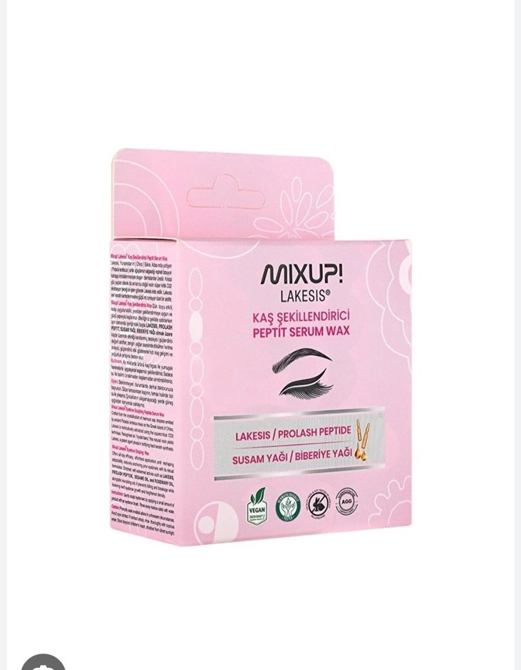 Mixup kaş şekillendirici peptit serum wax, lakesis, prolash peptit, susam yağı ve biberiye yağı içerir, kaşları şekillendirir ve besler.