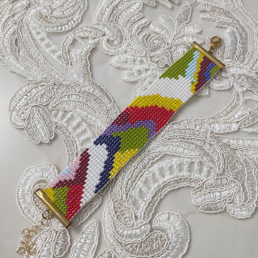 Nakış desenli, renkli boncuklardan oluşan bohem tarzda kadın bileklik, günlük kullanım için uygundur.